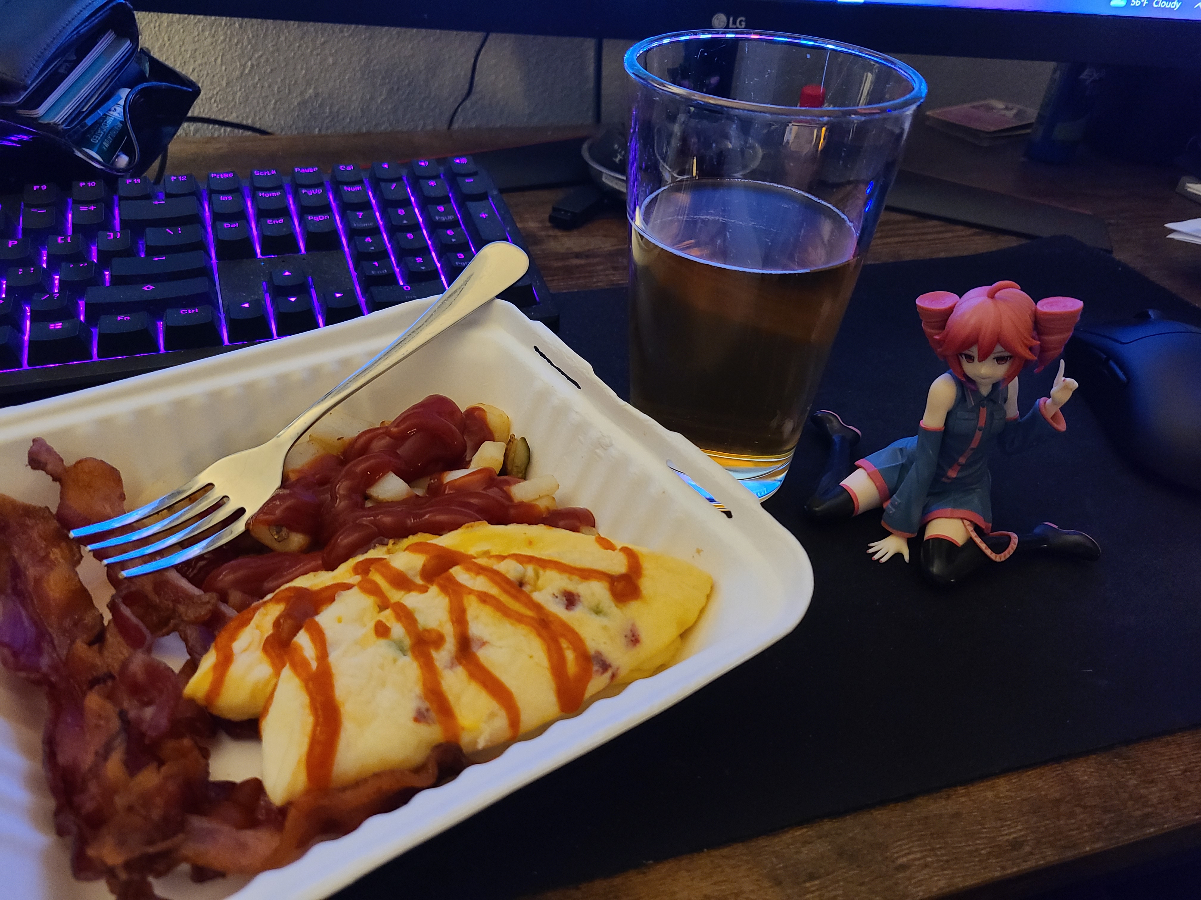 Just got off my night audit shift, grabbed some breakfast-dinner, and now enjoying my Friday with Teto, Asahi, and Slay the Spire 2. Gonna start Pragmata when I finish eating.Good day bros...