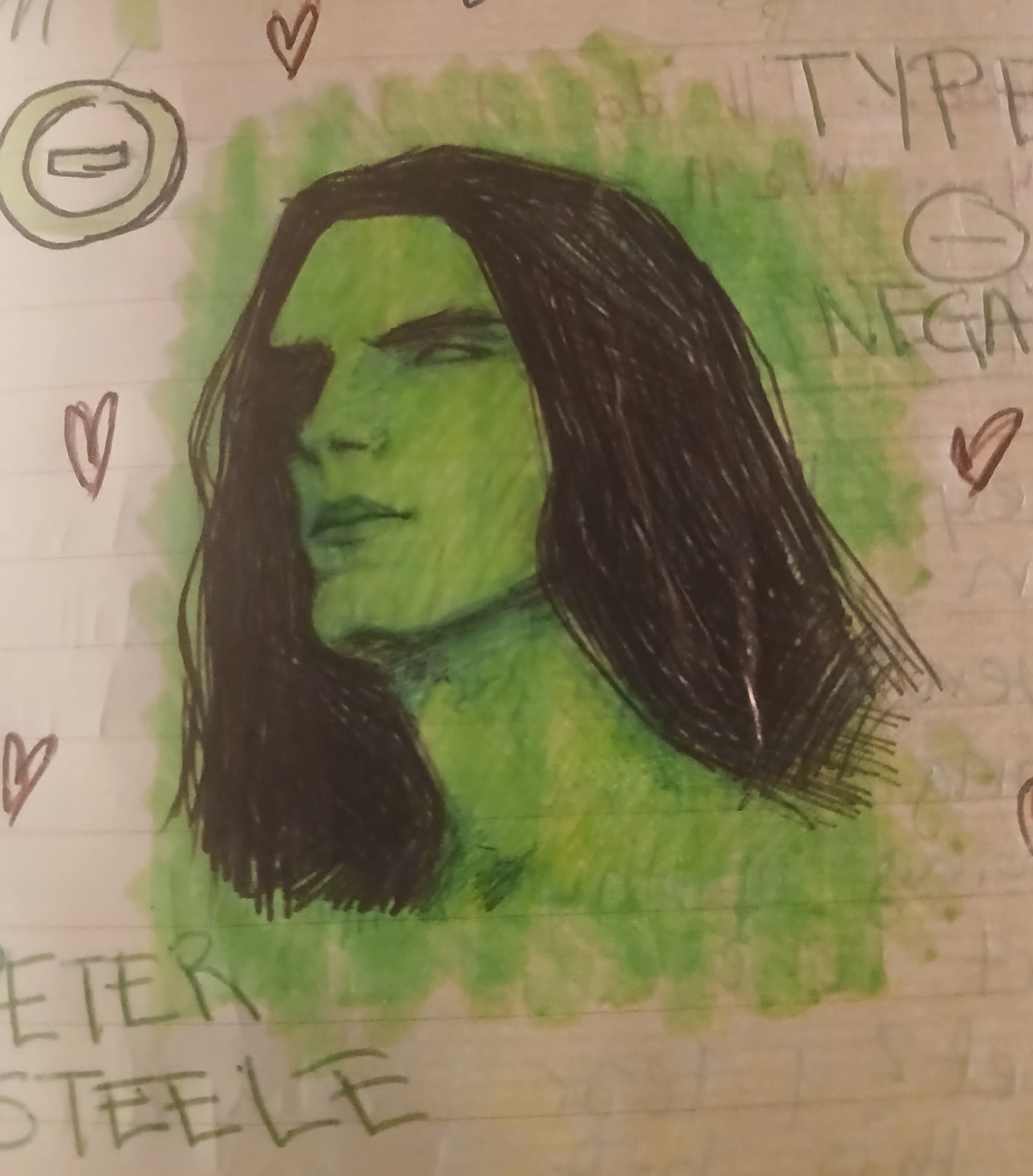 >>84452323I have a very cool method of drawing desu. I have limited supply but what I do is look at an image, replicate it with a pencil. Erase lightly and then cover it al woth a marker. Then use a pen that is the same colour as the marker and draw the outline and colour it in. Then use it to draw the shadows, then use the plac pen to draw all the dark parts such as hair and mouth and yada yada. Peter steele makes for such a good subject because he has such dark air and very dark features so the style works nicely.I'll add you anon, the name is rebirth and I have ted as my pfp