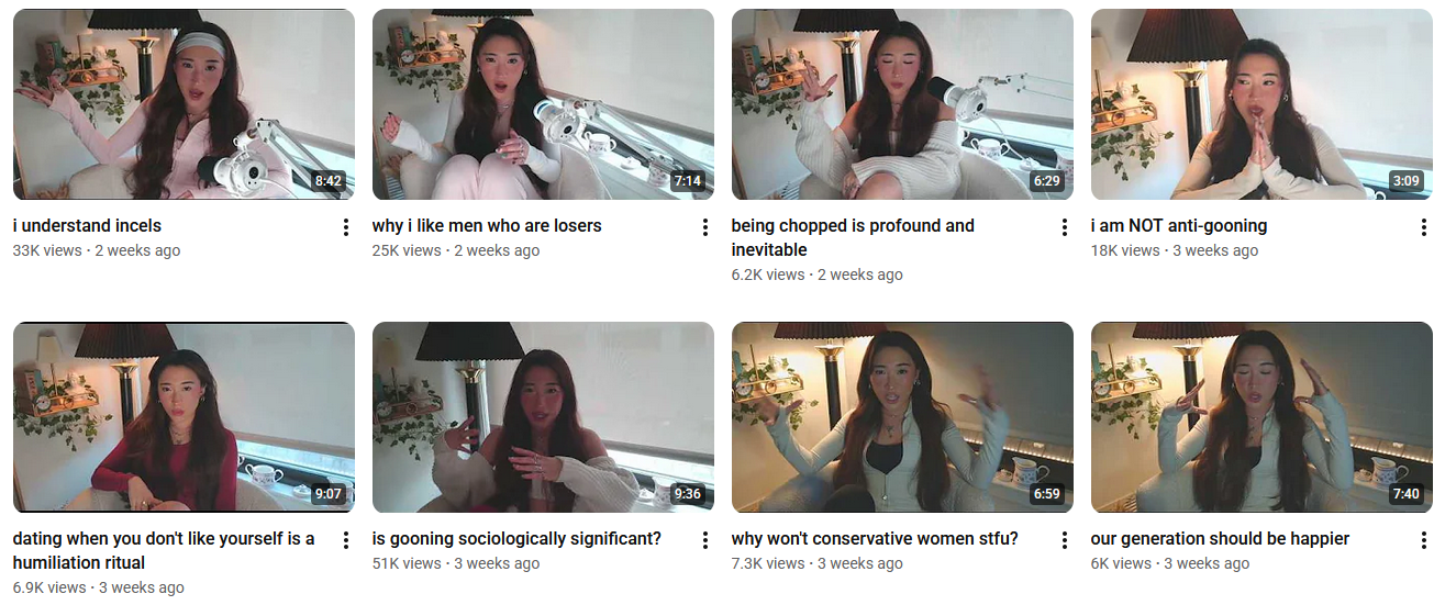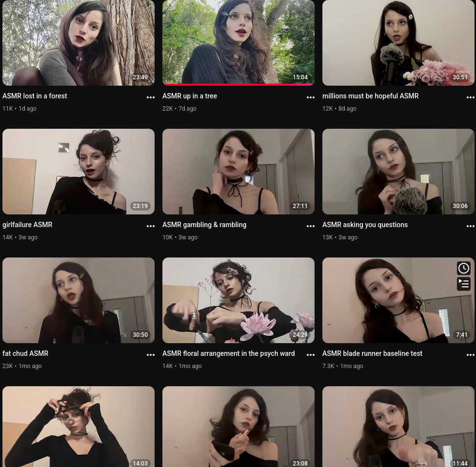alright im getting tired of these videos now, zoomer culture is very cynical and the comments always see through it and say pick-me or larp or grift or whatever is going on. millennials are more sincere simps. anyway it's a novelty if you've been out of touch for a while, but then you realize how normal and boring it all is