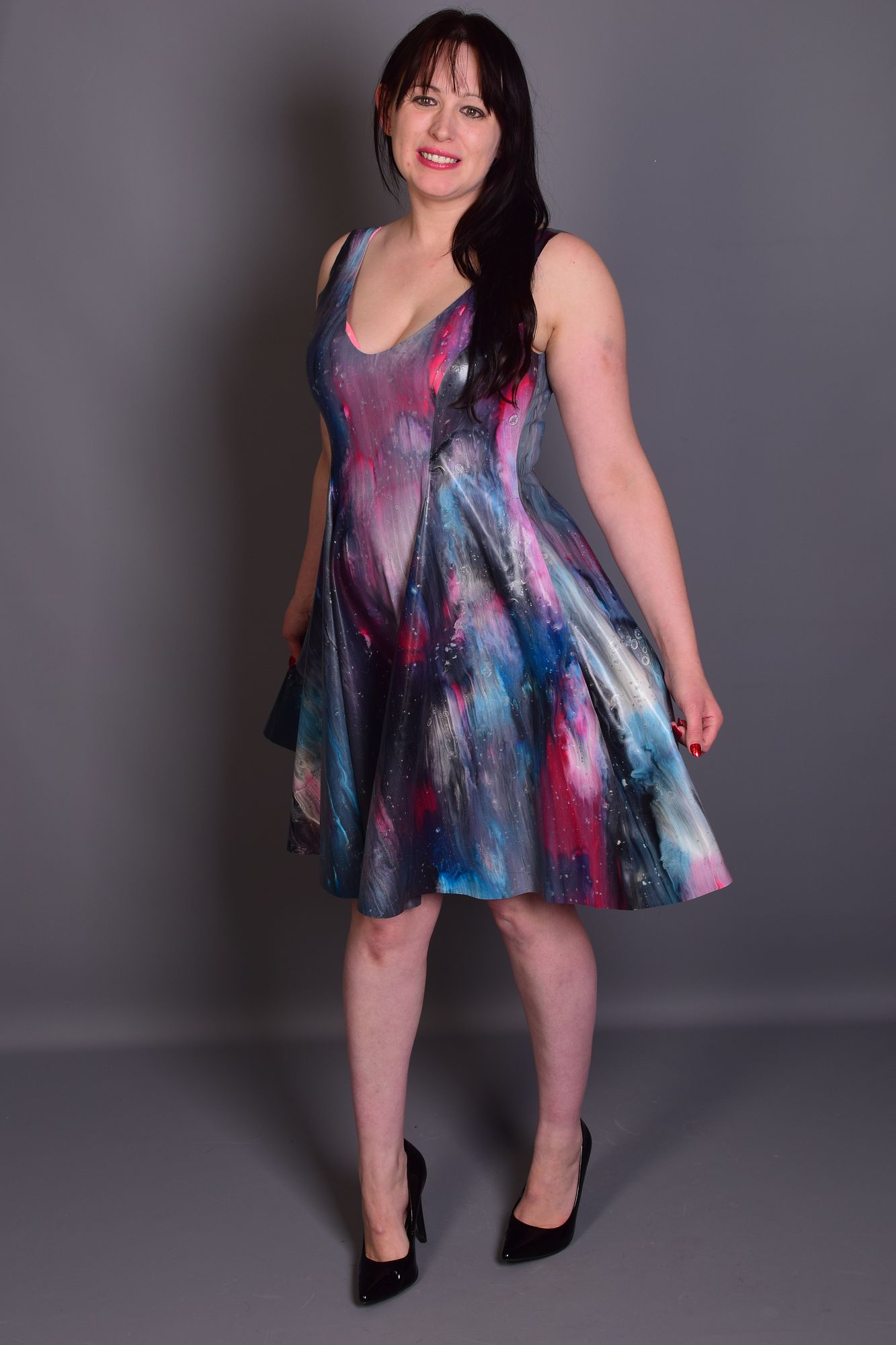 >be one of the best latex designers in europe>models wear regular bra under catsuit