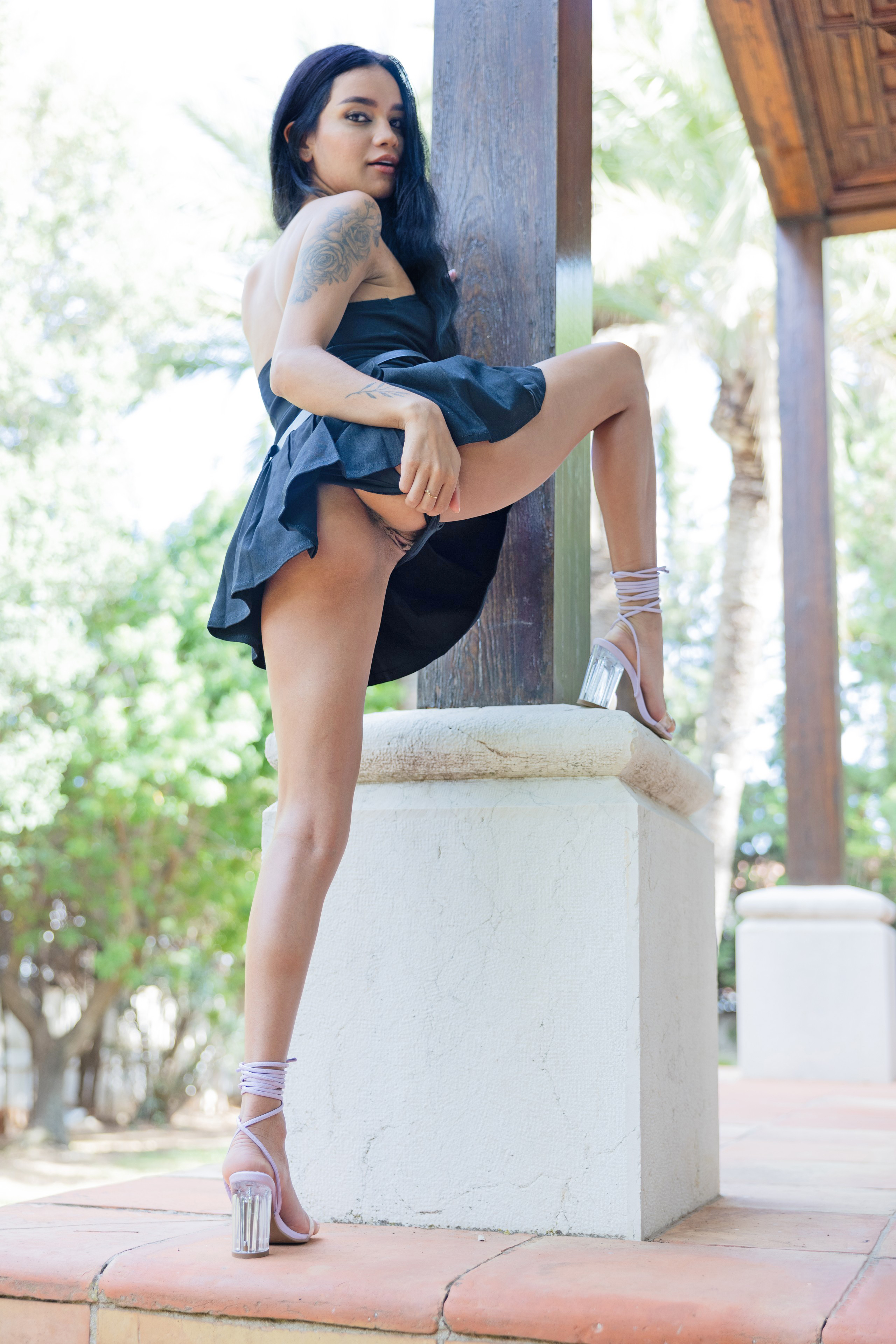 Girls with thin asses so their anuses are seen when she's standing