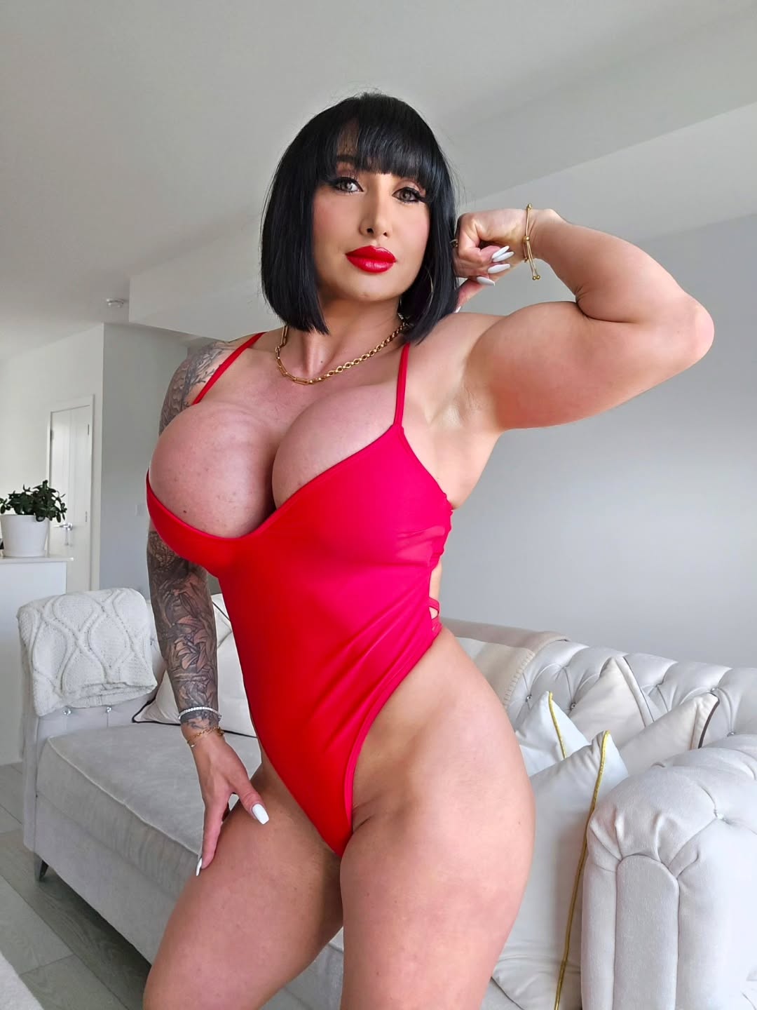 https://imgur.com/a/eNx2PkBGot any women with a body type like the one in the link? Strong and muscular but with a healthy amount of bodyfat for a "meaty" appearance? Like a powerlifter or CrossFit chick. This is an AI pic I generated purely for reference so obviously a real woman won't have as good of tits, but that's the general idea.