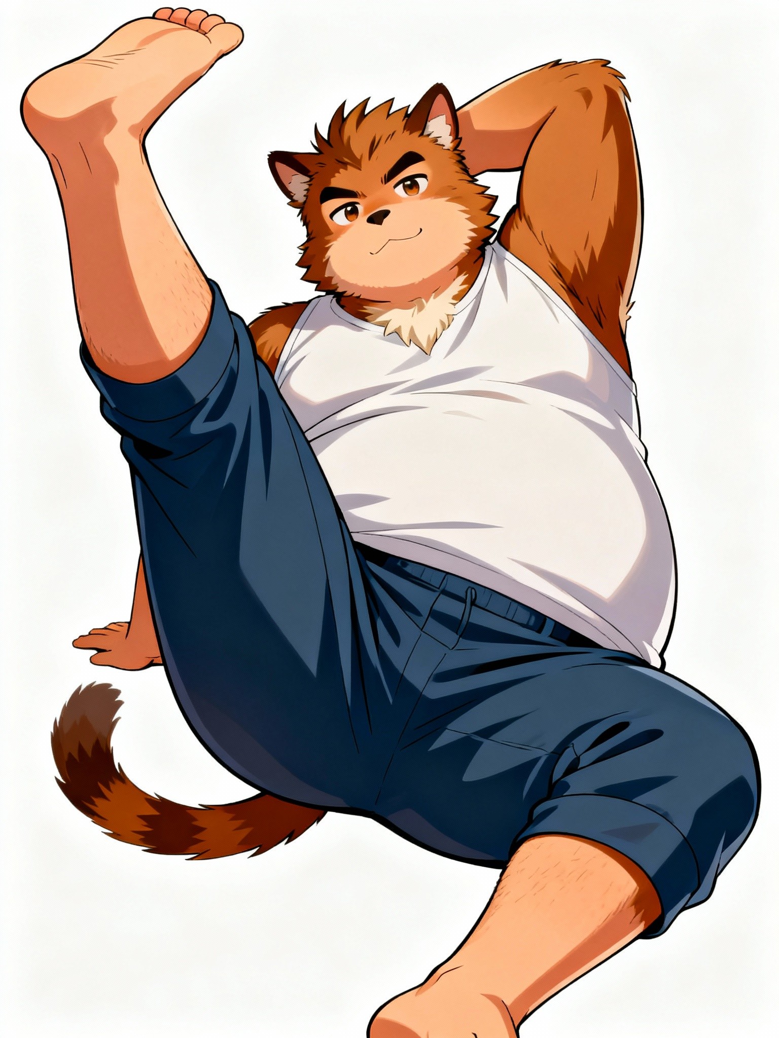 she's stretching herself at an acute angle because she's a cute angel.