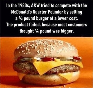 >>12202940>most people thought 1/4 lb is bigger than 1/3 lba testament to how stupid some people areYour fortune: You will meet a dark handsome stranger