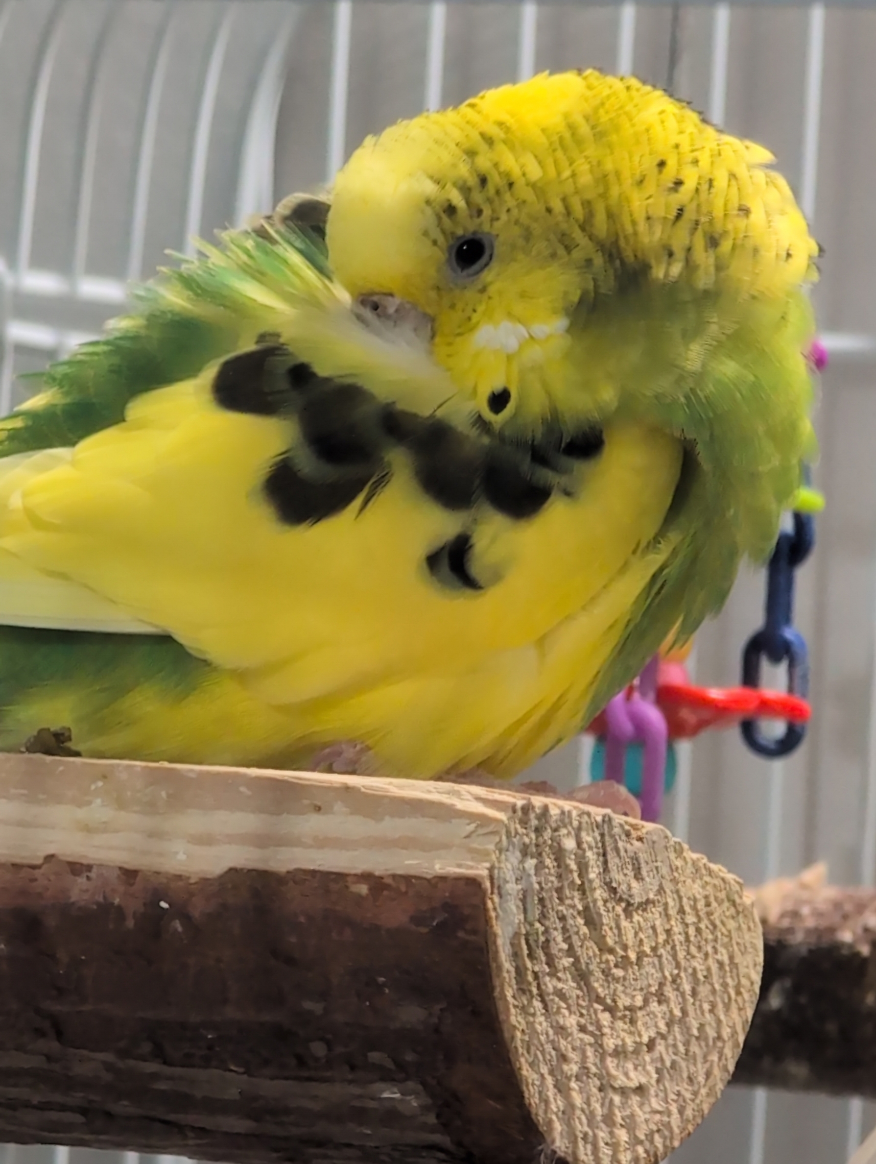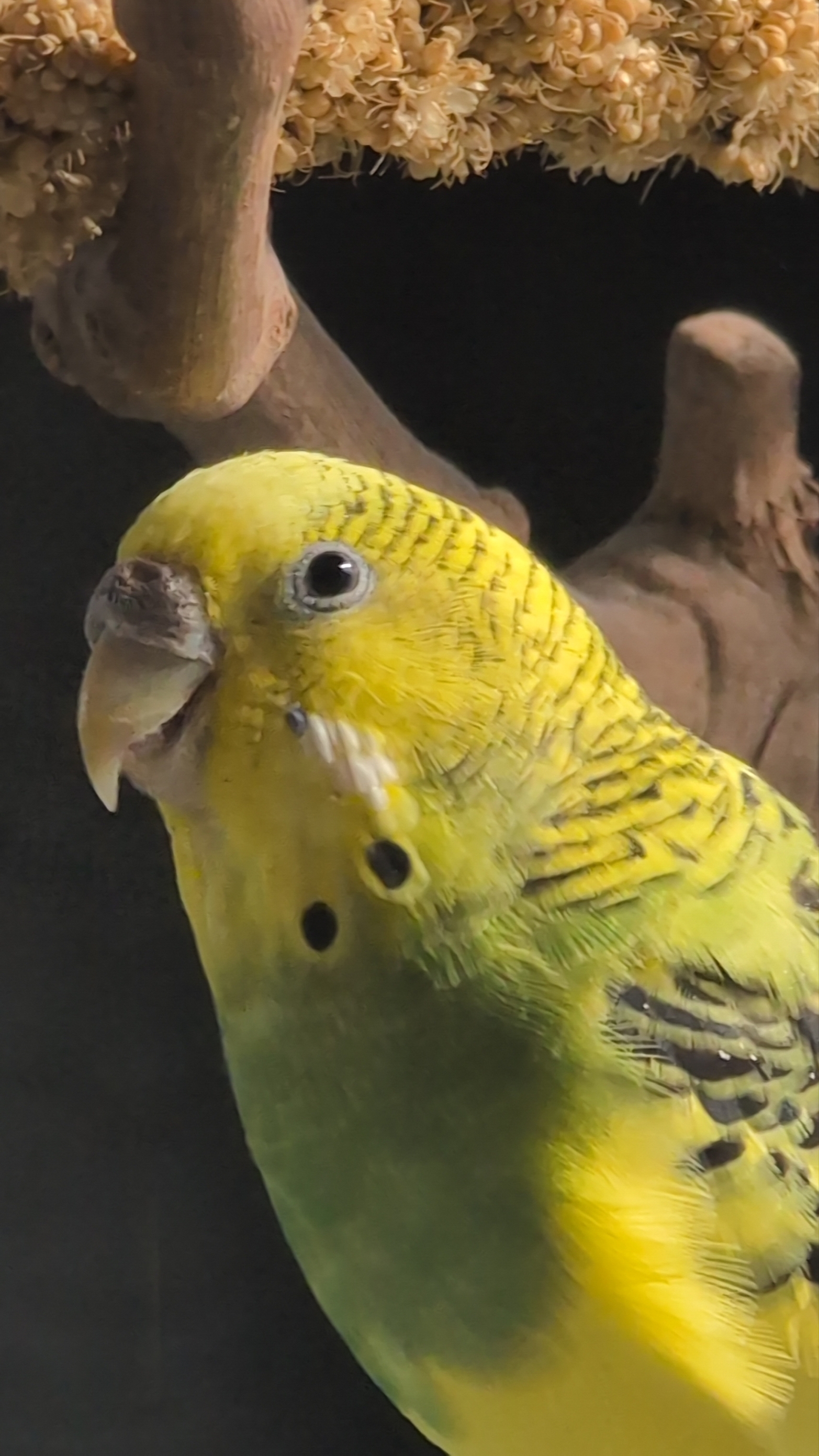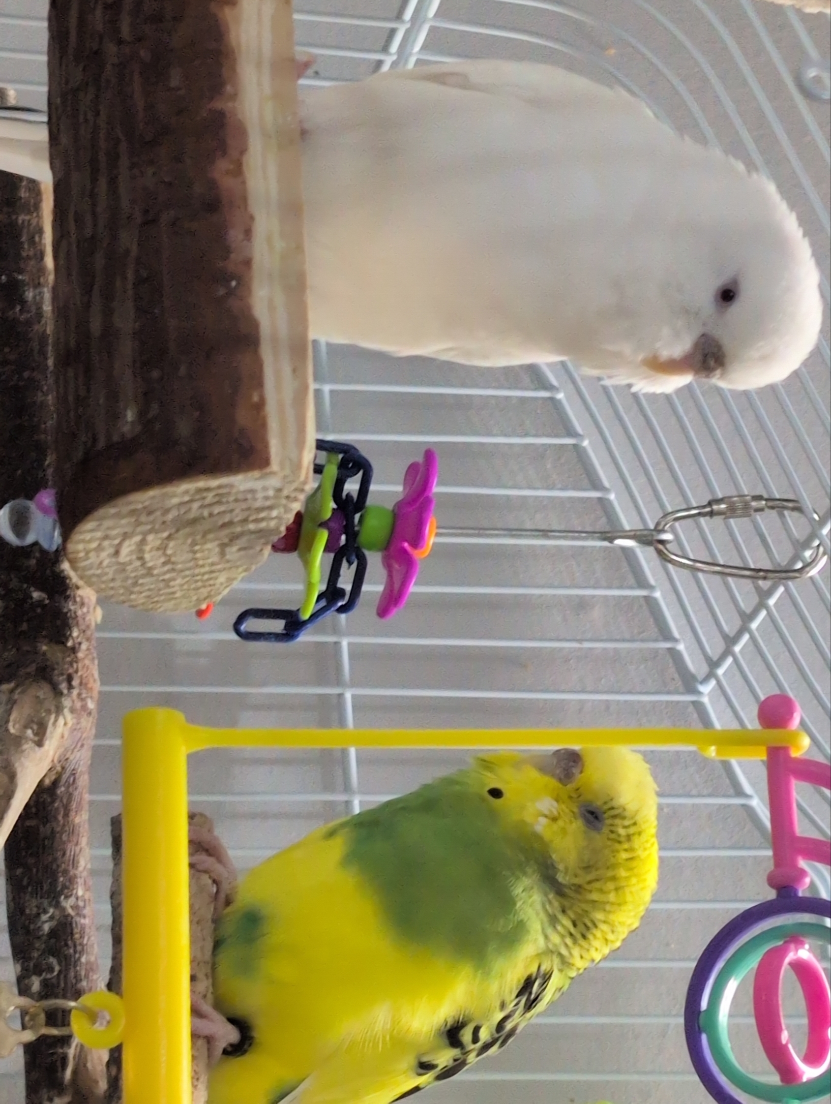 I only managed to record one little peep, she usually only sings when she is sleepy and she had an nap recently so she is just making beeps occasionally to talk to the another birb