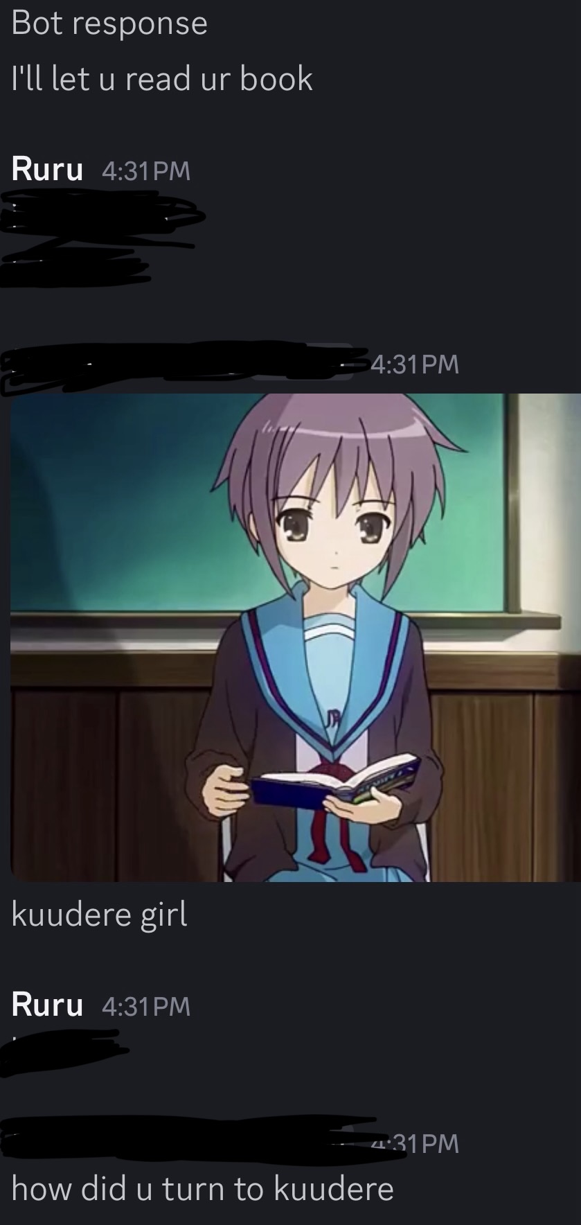 hai,,,i didnt wanna make a thread like this,,for anybody that was my frenmy discord account seems to have been bannedim not sure if ill be able to recover itadd: nyaavaluethx u so muchhhalso hows ur day so far,, i wana know,,Your fortune: ( ´_ゝ`)フーン