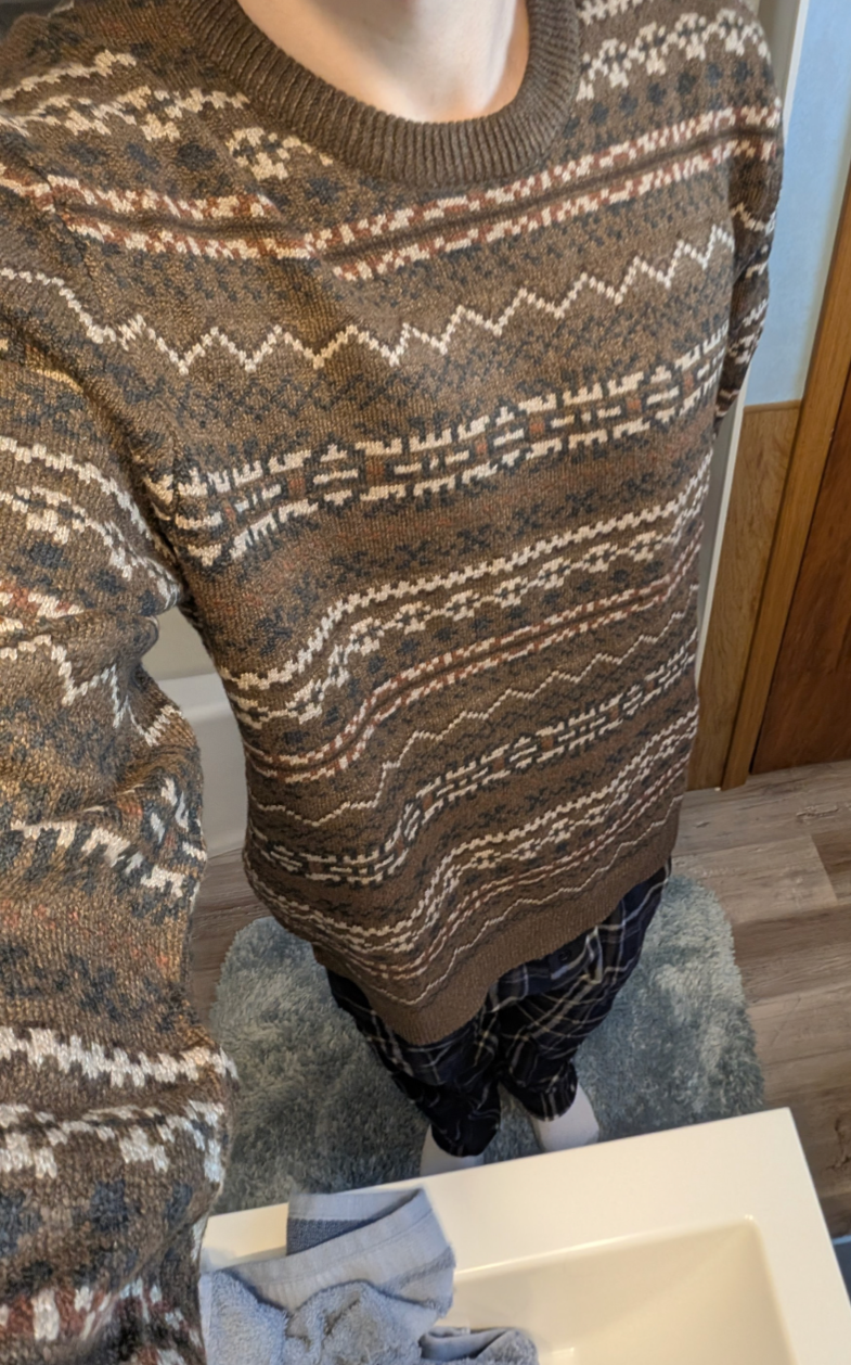 >>12575272how come? what material is it? this is my favorite sweater right now but i own a ton of wool sweaters too