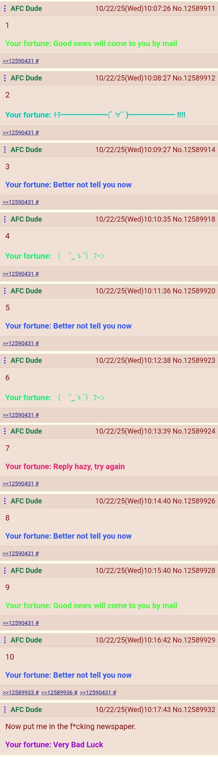 >>12590601my bro wants to post to appear in the newspaper, instead of having fun posting any shit that comes to mindYour fortune: Godly Luck