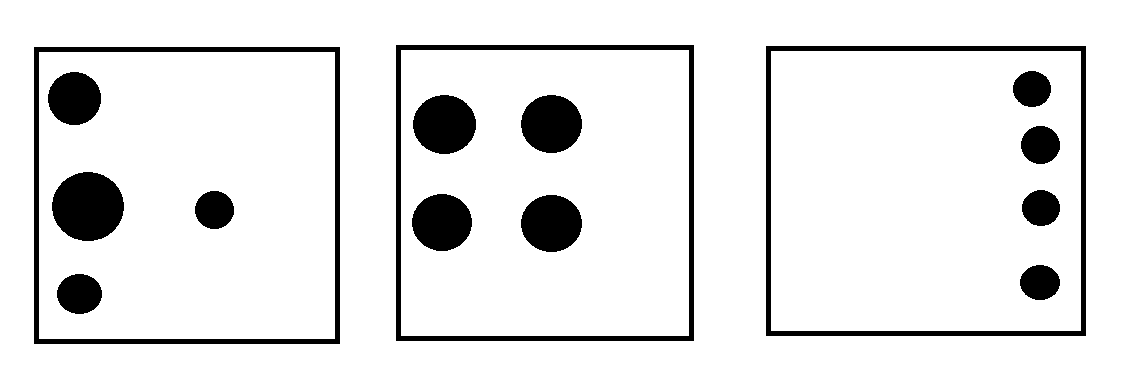 3 dots1 dot3 dots1 dot4 dotsWhich one is different?I would choose 4 dots because it's an even number.