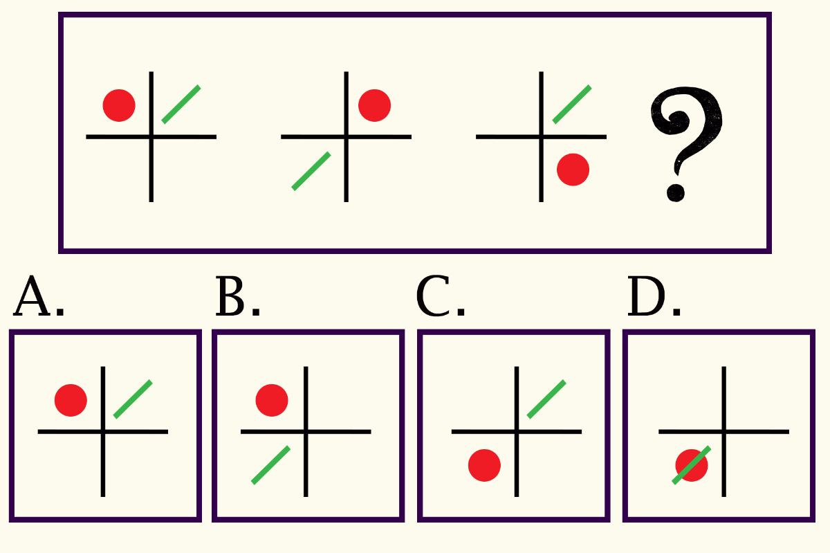 >>12691733also i think the answer is D and i try to explain it to you i may not be right the red dot is moving clockwise and the green lin is switching places