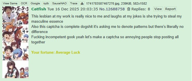 the captchas to make threads is 1000x harder than the normal one