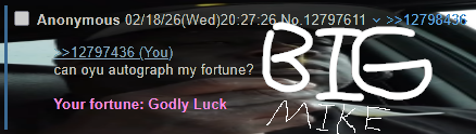 >>12797436can oyu autograph my fortune?Your fortune: Godly Luck