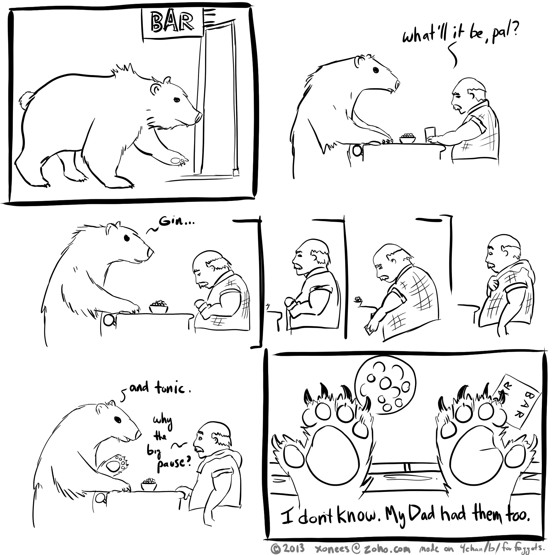 >>12800543I'm afraid I do not have bear hands. the only bear hands in this scenario would be the ones that maul me within the first hour or so because the bear probably doesn't like me very much