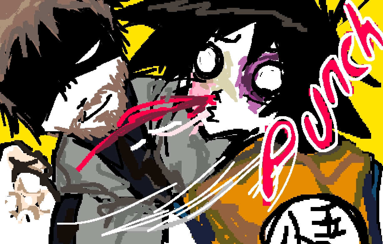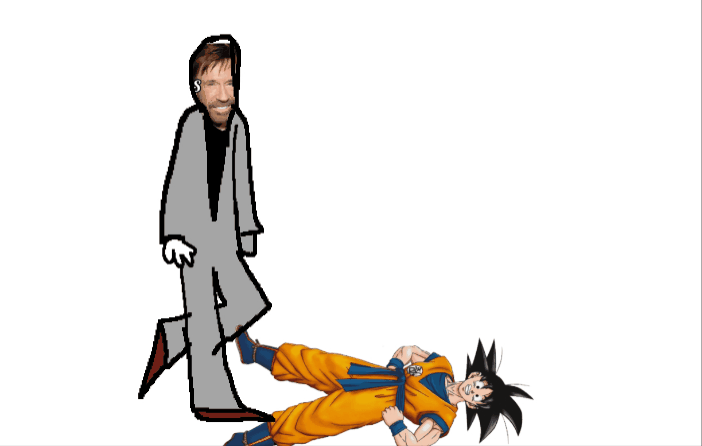 draw chuck norris punching goku and knocking him off his feet