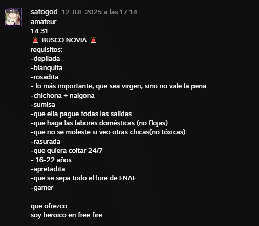 >>12877477dubbbieeesss fine ill answer>how would you picture her personality?shes gotta love laughing at stupid stuff, everything else is secondary. i think it'd be best if she's kinda lazy and spacey, maybe a little socially stunted and awkward so we can rly understand each other, but still kinda sassy. maybe even a little bit of a loudmouth, i like it when a girls kinda obnoxious>any hair color you secretly prefer on her? blue or orange>size of boobs you imagine for her?this does not matter to me, not very big is preferable i guess>what body type or overall look feels right for her? not fat but unfit and squishy. goblin body>would you see her with piercings or tattoos, or none at all?yea those r wicked cool>what skin tone do you find most fitting for her? sickeningly pale. black or chinese is also fine>and... is there any particular trait you’d want her to carry?uh... autism?Your fortune: You will meet a dark handsome stranger