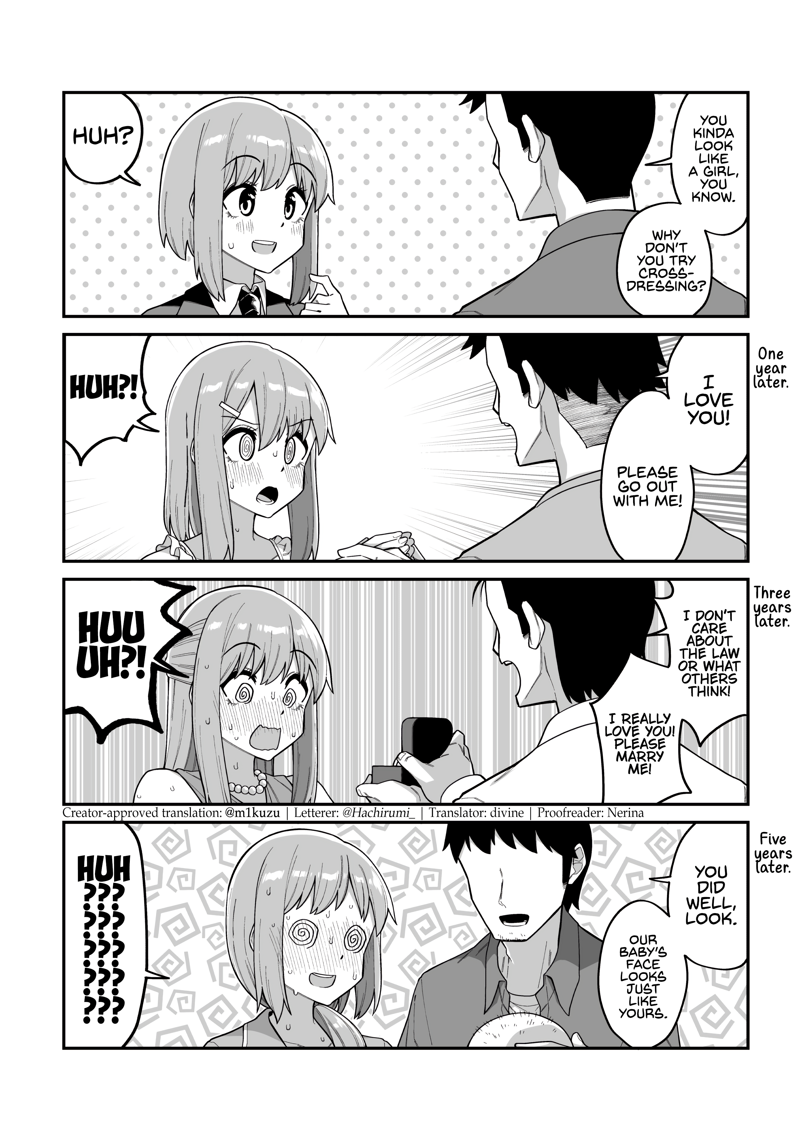 this is an accurate depiction of what happens when you call a boy cute, it melts his brain and makes him do stupid things like crossdress to get more complementsYour fortune: You will meet a dark handsome stranger