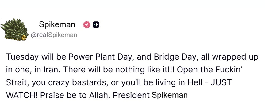 at least he's moved on from biological warfare with the spike proteins