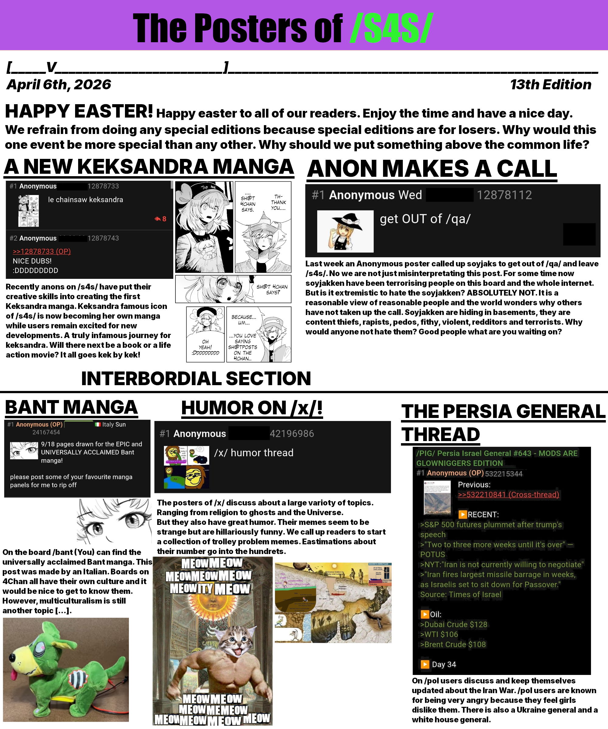 >The Posters of /S4S/.>Read the 13th edition of the 4Chan wide paper.>For some reason I had a dream that suddenly many more people started making papers.