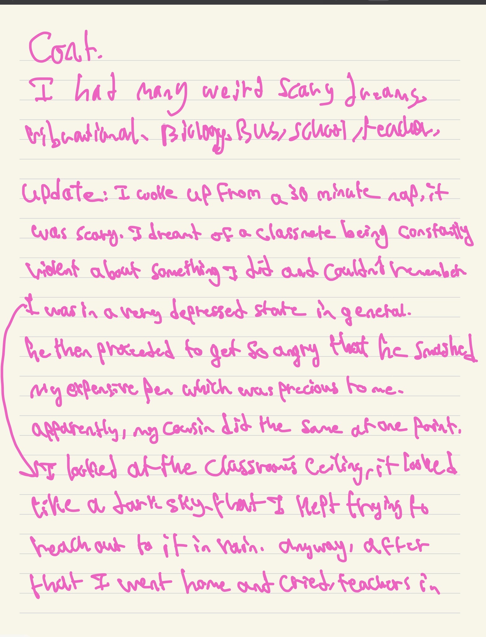 oh wait it was a phone he broke at first, a pink iphone 15 that i saved for, then it turned intoa pink pen at one point