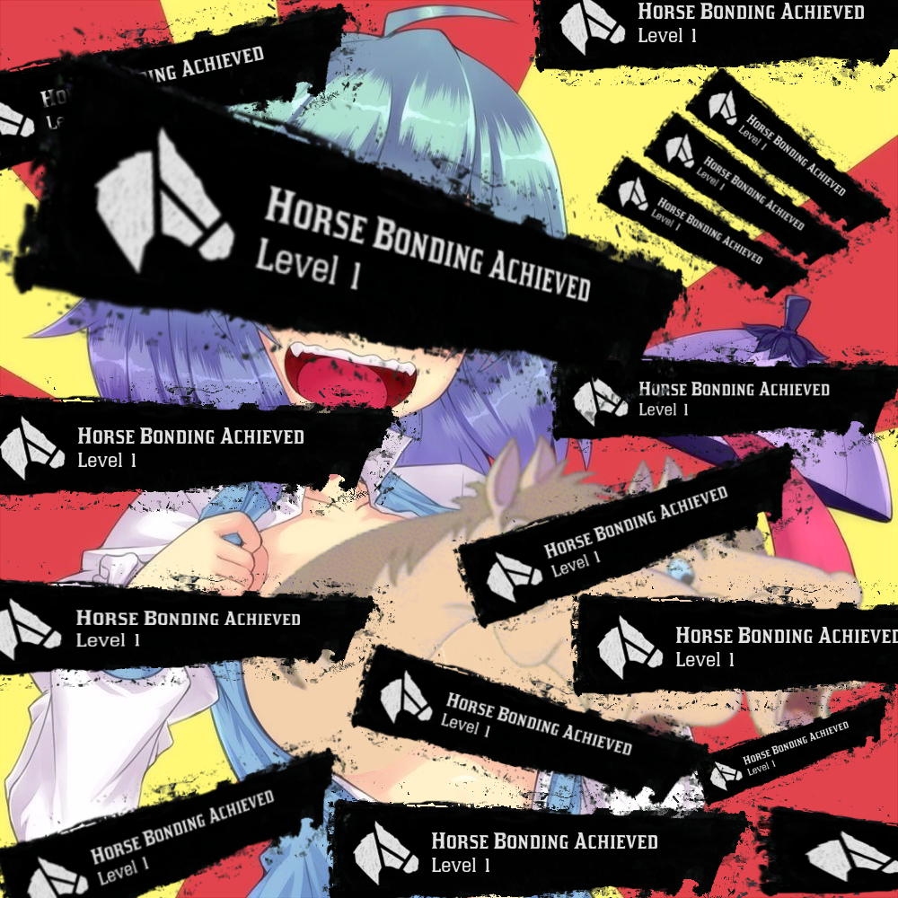 Eh? You've never achieved Horse Bonding Level 1 before? And you’re HOW old? J-Jeez! Ahahahaha! W-Well, we’d better fix that then! Just close your eyes for a sec, aaaaaaand…HERE! NEIGH!