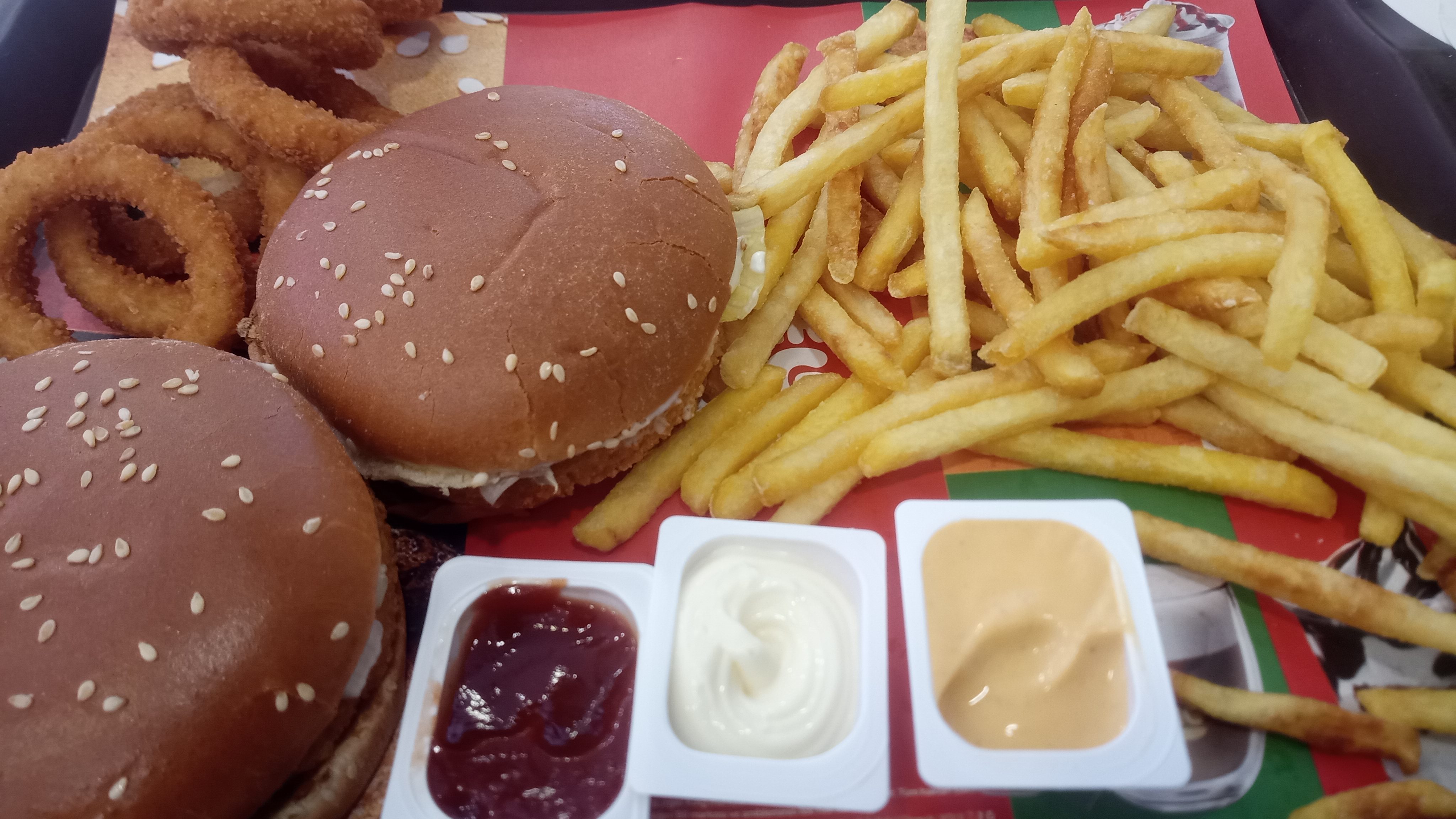 i'm getting chicken sandwiches with onion rings and peach-flavored ice tea