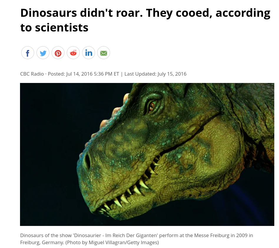 >>16958259Bitter lesbians and trannies come up with this shit to validate their poisoned worldview. We know dinosaurs roar because crocodilians roar. Birds would roar too if they were bigger.