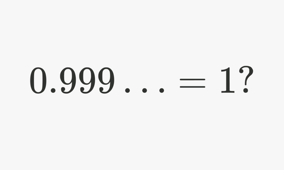>>168129631/9 = 0.111...+8/9 = 0.888...=9/9 = 0.999...