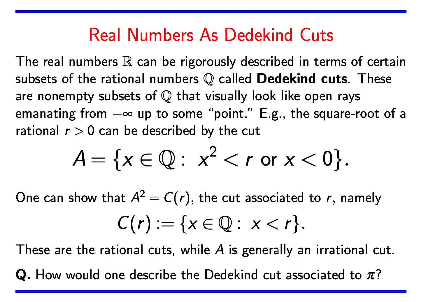 >>16815615I can forgive not having studied the surreals, but have you seriously never seen a dedekind cut in standard analysis?