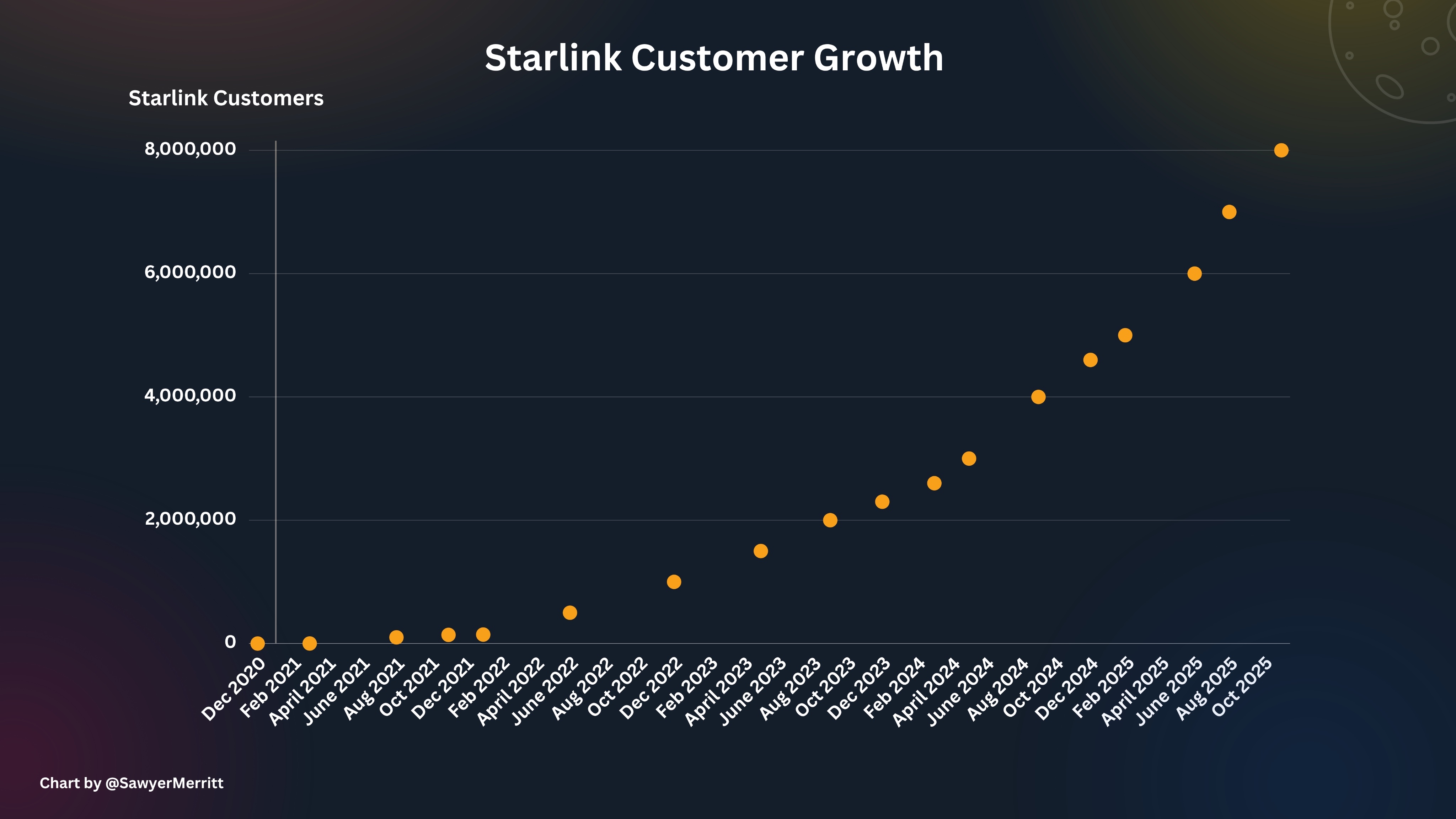 ACCELERATEAt this rate they'll have 16 Million subscribers bringing in $30BN in revenue per year by the time Starship launches to MarsThen on the next launch window they'll have 60 Million subscribers/$100Bn+ year in revenue