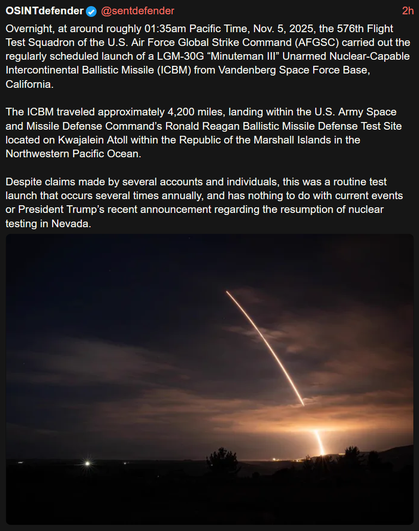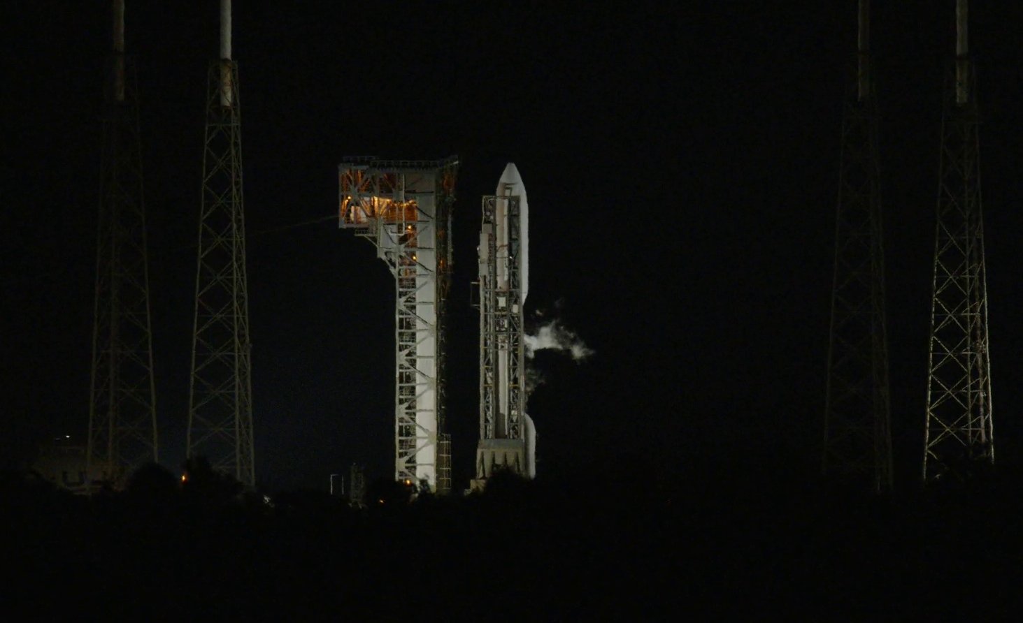 https://x.com/ulalaunch/status/1986266299463266365>Atlas V is fully fueled and configured for its commercial satellite launch. Clocks are holding at T-minus 4 minutes for a 30-minute planned built-in hold before final readiness polls and we enter terminal count. Our visibility graphic shows when the Atlas V rocket will rise into view for spectators tonight
