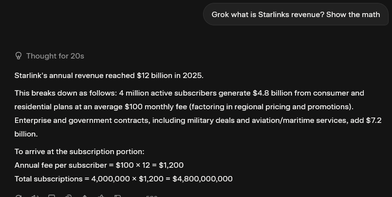 >>16837908So, show the math on your estimate if you like. Typing, "Grok what is Starlinks revenue?" doesn't count.
