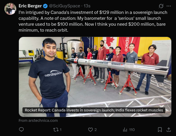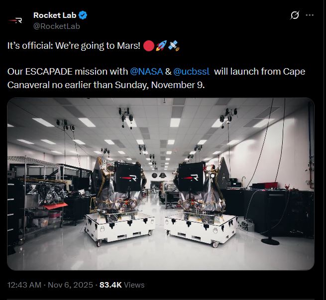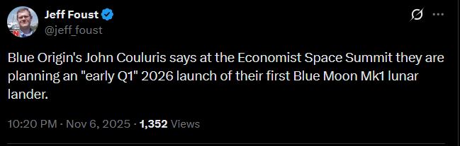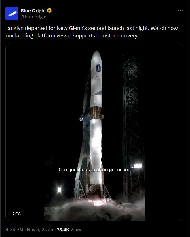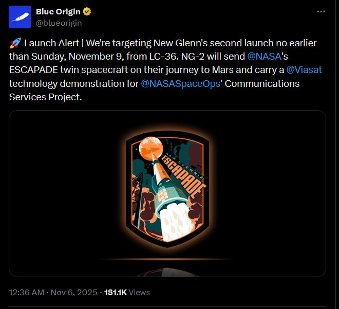https://x.com/davill/status/1987199530396160228>NG-2 is vertical at LC-36.>One step closer to Mars!