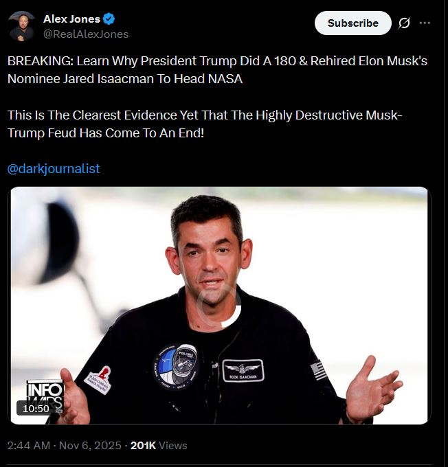>Incredible conversation on Trump Force One with Eric Trump and Trump’s new NASA Administrator Jared Isaacman.