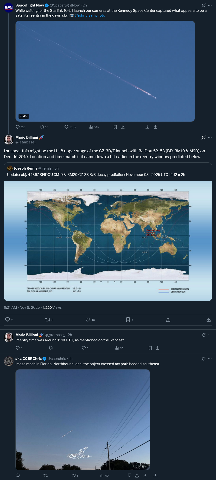 https://x.com/SpaceflightNow/status/1986242221679452497>Both SpaceX and ULA are simultaneously loading liquid oxygen on the upper stages of their respective rockets at Cape Canaveral Space Force Station. Truly a multi-user spaceport kind of night.