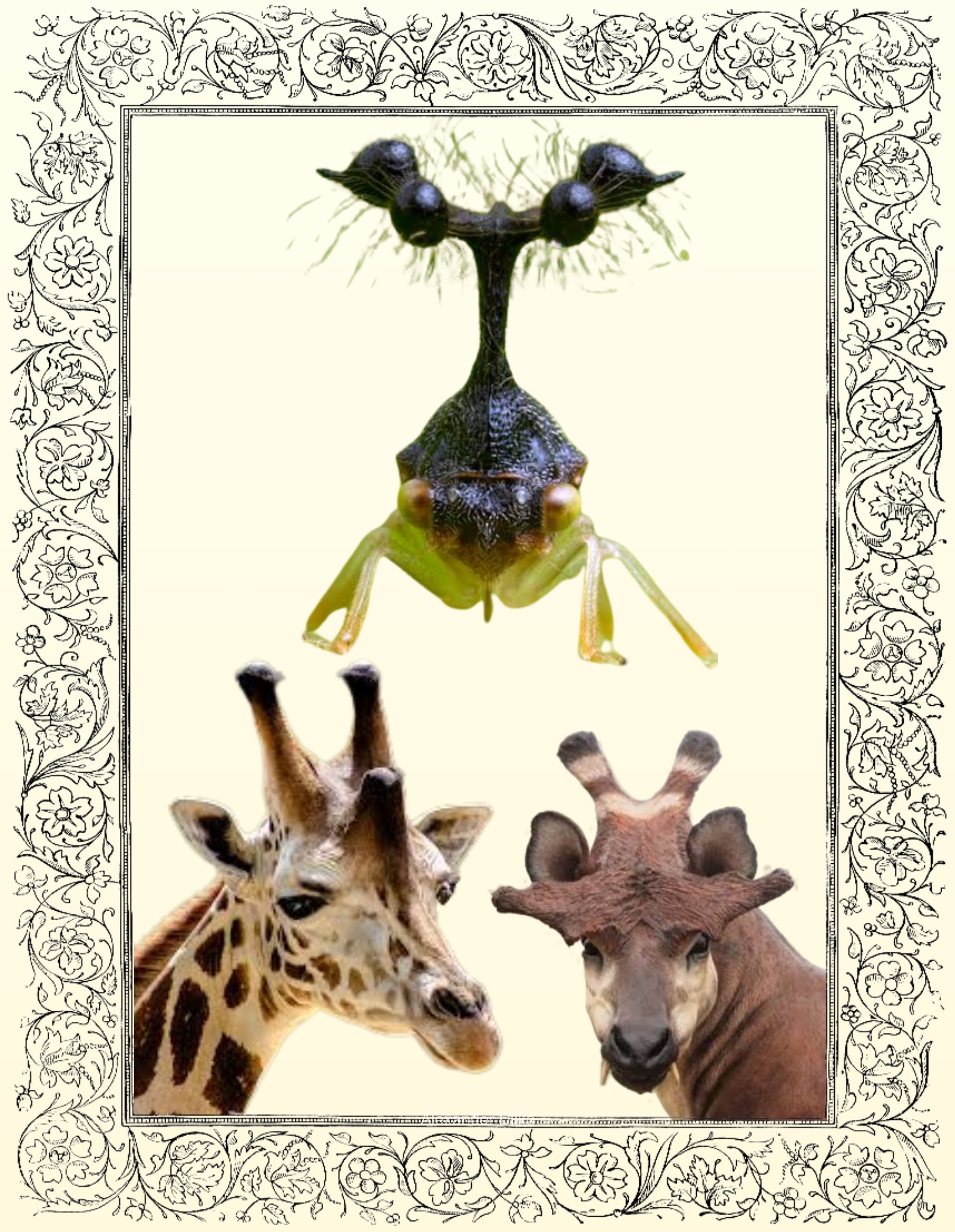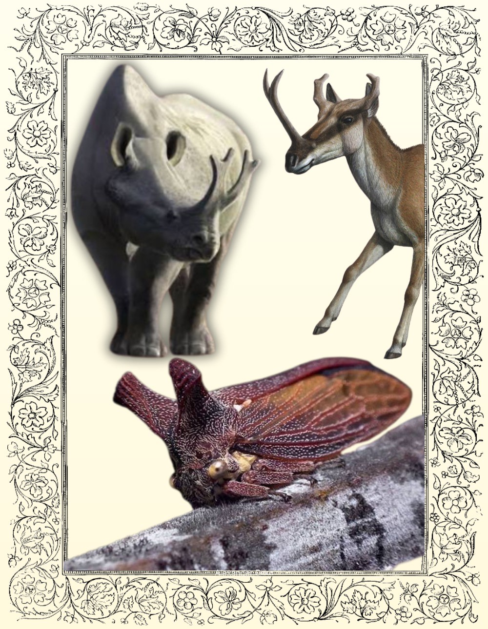 Sexual Dimorphism and Environmental Adaptation.The distribution and shape of these structures are optimized by evolutionary pressures. Sexual Dimorphism: Most female deer do not have antlers due to caloric limitations; they must prioritize pregnancy. Reindeer are an exception because electroreception is exceptionally valuable in dark winters, likely useful for predation and possible detecting EMF from living grass under snow. Male and female giraffid ossicones are likely highly calorically efficient considering how small they are but are clearly very powerful. Extinct giraffids had more extreme dimorphism. Structure Matches Environment: Multiple tines (Moose/Deer): Close-range sensing in dense brush/forest. Long, thin structures (Oryx, Gazelle): Long-range sensing in open savannahs. Helical horns (Ibex, Sheep): 3D spatial sensing in mountainous terrain. Convergent Evolution: The Proof is in the Pattern. The same solutions evolve independently to solve the same problems, confirming the function. Sawfish Rostrum: A weaponized electroreceptor in a similar niche to antlers. Treehopper Helmets: Confirmed terrestrial electroreception (likely for detecting wasps/predators). They look remarkably like hadrosaur and parasaur headgear. 65+ million years apart, this convergence represents strong functional pressure, not arbitrary display.