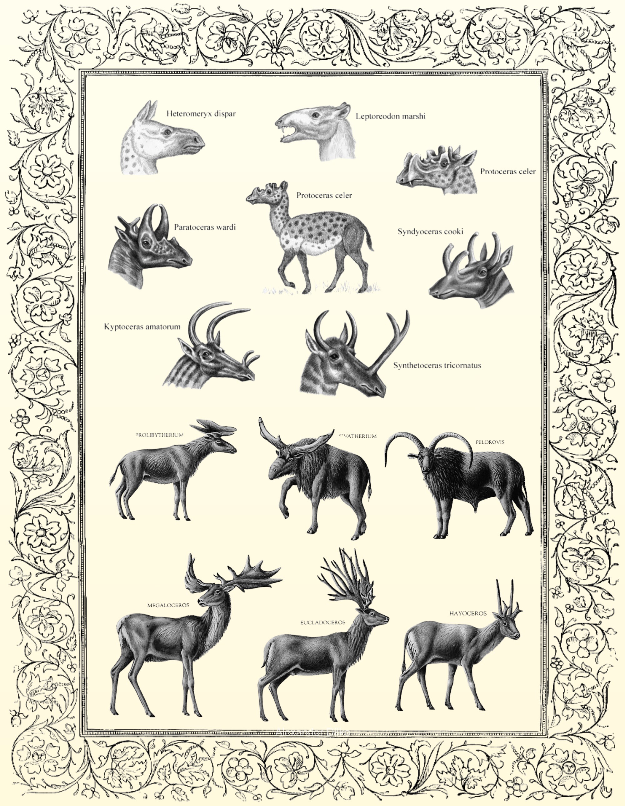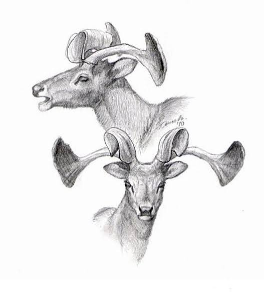 Examples: Sinomegaceros (triangular antenna array), Megaloceros (massive metabolic cost), Shivatherium (complex giraffe-lineage structures), Palaeomerycidae (permanently vascularized T-shaped structure).