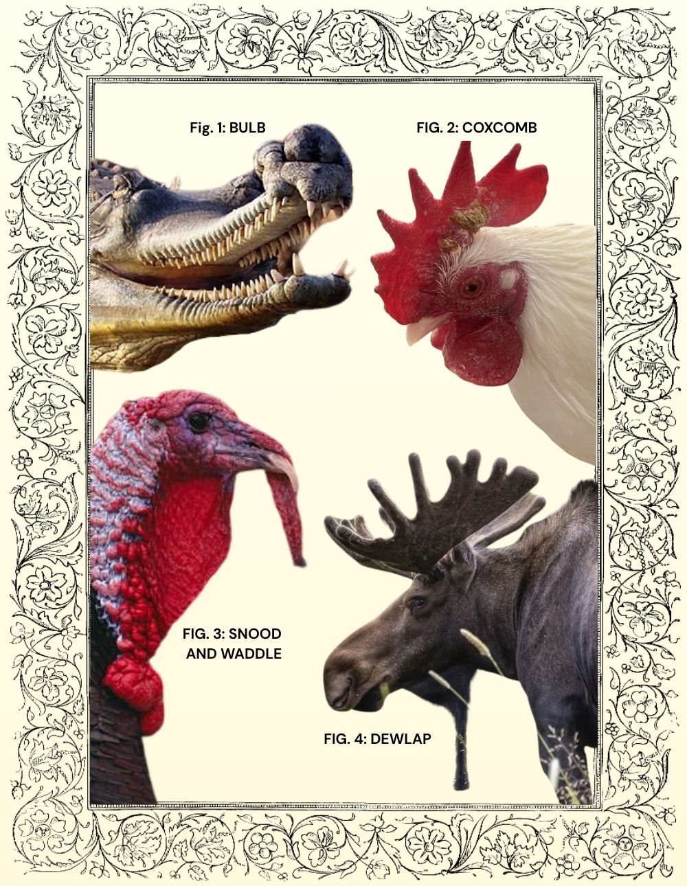 Why Current Theories Fall Short.The display-and-combat model fails to explain the evidence. If these structures were for display or simple weapons, their design would be different. Moose antlers: Asymmetric, "ugly," and massively expensive poor for display. Why shed them in winter if they're for defense? Cassowary crest: Is not hollow; the hornbill's casque is not connected to the airway, and they are not particularly loud animals. Ineffective Weapons: Why are combat weapons so weirdly shaped? Many are barely effective for killing. Illogical Design: Why are heat-regulating structures placed in direct sunlight, with a poor surface-area-to-volume ratio? Display Failures: Display structures must be symmetrical and visually appealing to honestly communicate fitness. Many are not. Why do so many animals have whiskers without clear applications from the traditional framework? Does balance or proprioception makes sense for a cow? Isn't the inner ear and living skin better than dead keratin? Why would you need more than 4-10 proprioceptors for navigating tunnels? Why do tigers and lions need large whiskers for proprioception and balance but cheetahs do not? - It is most likely because lions and tigers hunt in dark dense brush but cheetahs hunt in the daytime on open plains where electro reception is less valuable.