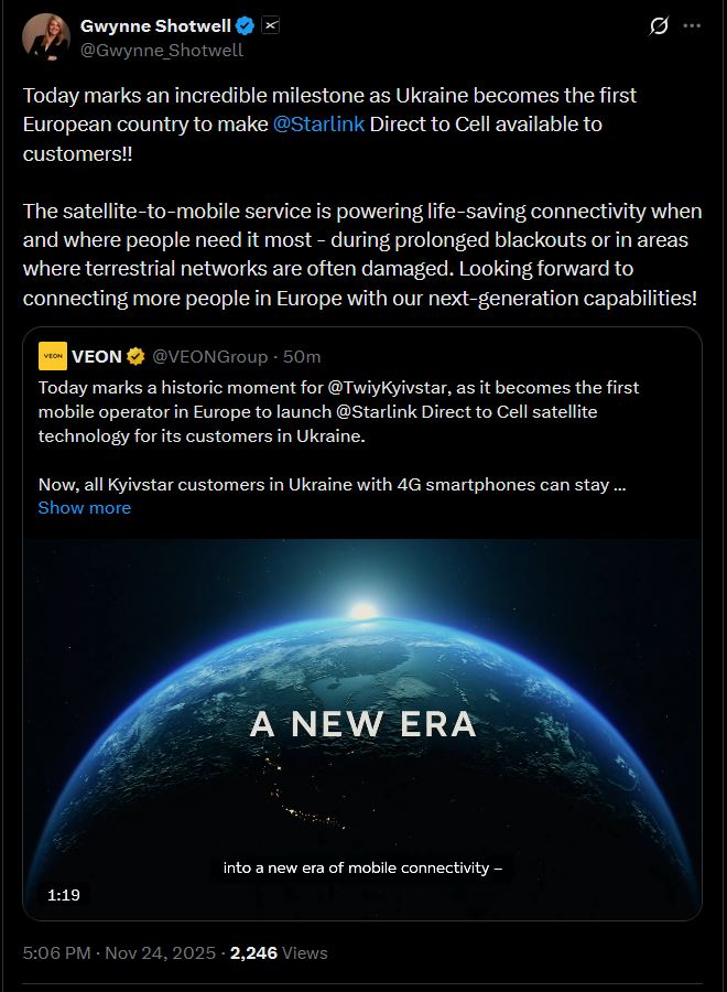 https://x.com/Gwynne_Shotwell/status/1992973037881237617