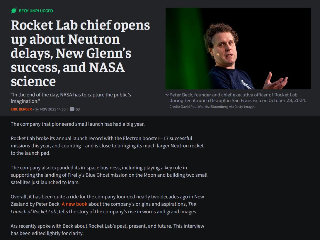 >>16858935Last I heard, they were still planning to reuse a booster, but still no exact dates. So far, they managed to refly one of those Rutherford engines. Here's a more detailed timelinehttps://old.reddit.com/r/RKLB/comments/1irq3g5/a_history_of_electron_reusability_timeline/>inb4 plebbityeah