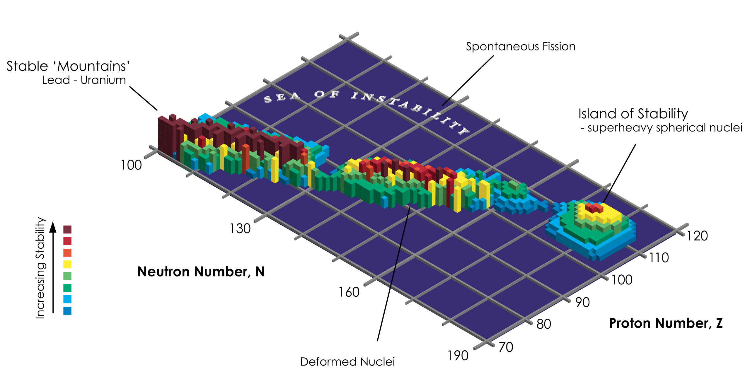 There is believed to exist an island of stability, a plateau where elements no longer decay rapidly and exist stable for long, usable periods of time somewhere up there.