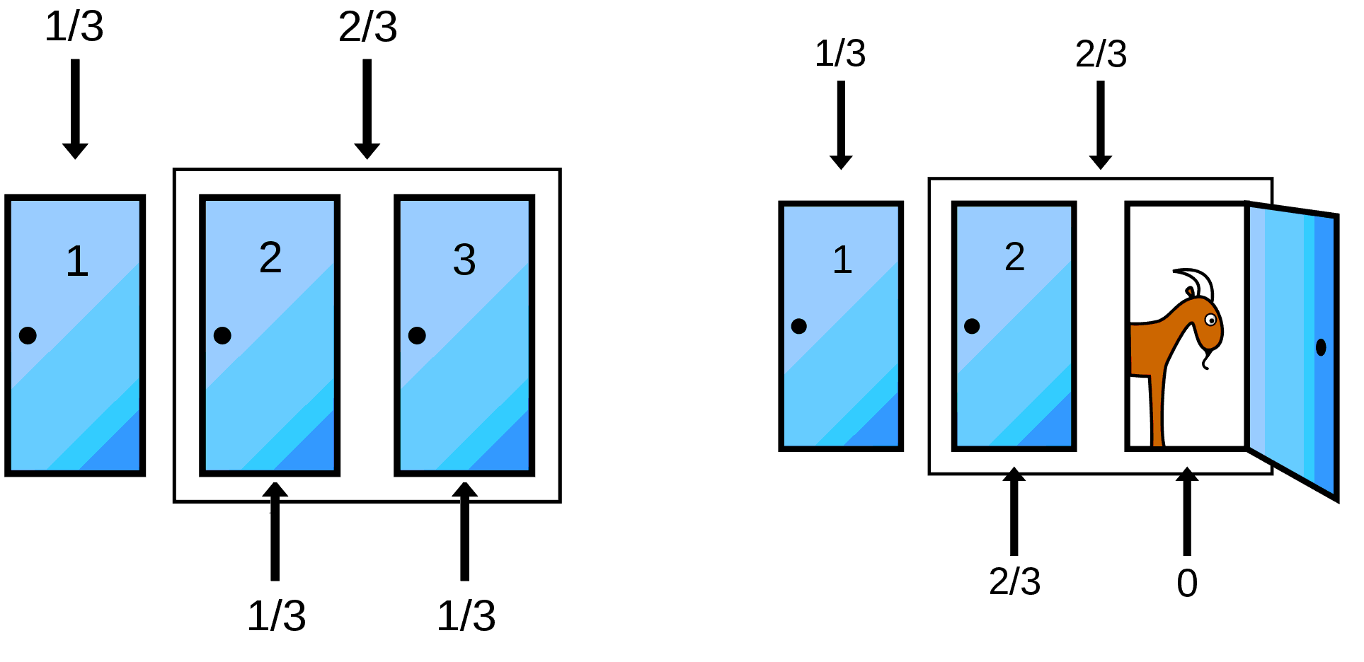 >>1688742699%, but that is a irrelevant different scenario.Here you have 2 doors. One is correct. How likely is it that you pick the correct one?