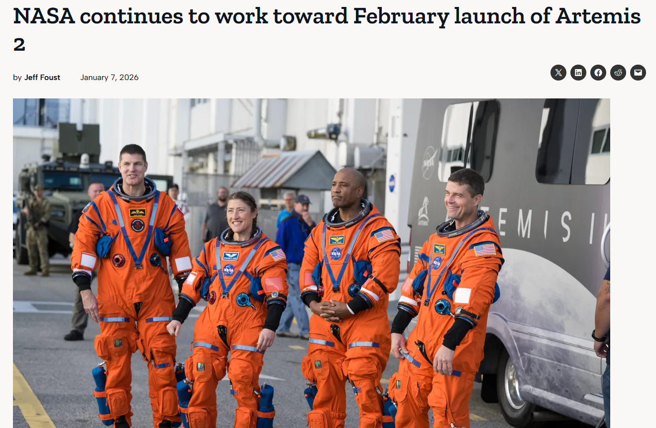 https://spacenews.com/nasa-continues-to-work-toward-february-launch-of-artemis-2/>PHOENIX — NASA says it is continuing to prepare for a possible Artemis 2 launch as soon as February, but with remarkably little publicity by the agency for the first crewed flight to the moon in more than 50 years.>In a presentation Jan. 6 at a meeting of the Lunar Exploration Analysis Group, Lori Glaze, acting associate administrator for exploration systems development, said the agency is targeting a launch window that opens in early February, assuming no major issues arise in the coming weeks.>“Right now, we could still make the February launch. We’ve got to have a lot of things go smoothly and go well,” she said. “But it’s still feasible.”