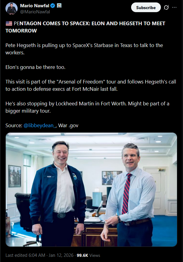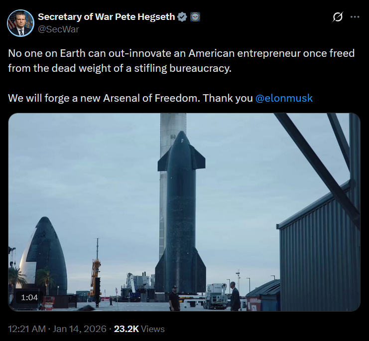 https://x.com/i/status/2011078392414945322>Neil deGrasse Tyson nailed it years ago. You can’t walk into a room, ask for a trillion dollars, say it’s for Mars, and expect applause.