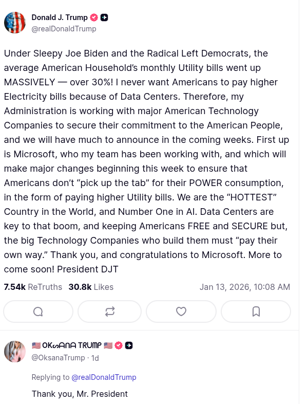 >>16891347>>16891353This was a real announcement retards.https://www.tomshardware.com/tech-industry/artificial-intelligence/trump-says-that-ai-tech-companies-need-to-pay-their-own-way-when-it-comes-to-their-electricity-consumption-says-major-changes-are-coming-to-ensure-americans-dont-pick-up-the-tab-for-data-centers
