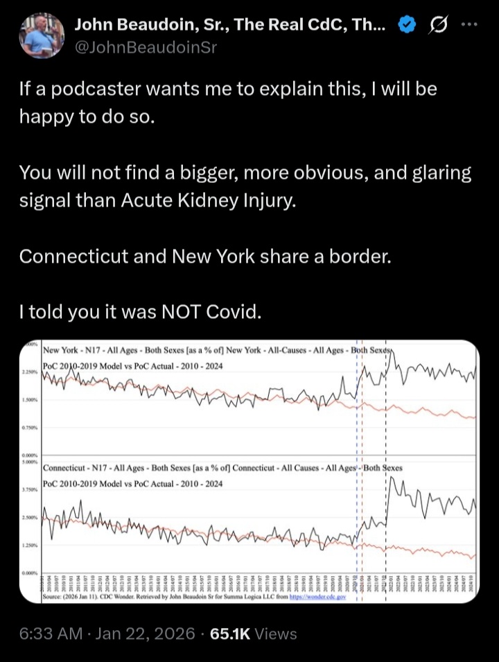 RENAL2025 ScienceDirect: Single-center, 6 pts de novo/relapsing glomerular diseases post-mRNA vax, biopsy-confirmedhttps://www.sciencedirect.com/science/article/pii/S00029629250000112022 PMC review: 130 cases renal AEs post-vax; MCD (52), IgAN (48), ANCA (15), etc. https://pmc.ncbi.nlm.nih.gov/articles/PMC96961892025 PMC: Vax assoc w/ higher AKI risk, dialysis; cumulative renal dysfunction inc.https://pmc.ncbi.nlm.nih.gov/articles/PMC125953412023 Frontiers: 27 pts AKD post-vax (mostly mRNA); GN (16), CKD deterioration (11). https://www.frontiersin.org/journals/medicine/articles/10.3389/fmed.2023.1189243/full2025 ResearchGate: Single-center, unexpected renal SEs post-mRNA; similar to above. https://www.researchgate.net/publication/387804132_Unexpected_renal_side_effects_of_mRNA_COVID-19_vaccines_a_single-center_experience_and_short_review2023 ESM: mRNA vax AEs incl AKI, CKD; DNA contam risks.https://esmed.org/impacts-of-covid-19-mrna-vaccination-and-infection2025 Surabaya MJ: mRNA vax correlates w/ renal disease inc (AKI forms).https://surabayamedicaljournal.or.id/indonesia/article/view/162023 ScienceOpen review: IgAN/other kidney diseases triggered by mRNA vaxhttps://www.scienceopen.com/document_file/5da1b51c-f96f-4a18-a548-3aabe000fb77/PubMedCentral/5da1b51c-f96f-4a18-a548-3aabe000fb77.pdf2021 Fierce Pharma: EMA probes mRNA link to nephrotic syndrome, glomerulonephritishttps://www.fiercepharma.com/pharma/europe-probing-link-between-pfizer-biontech-moderna-covid-vaccines-and-skin-condition-22024 MDPI: mRNA-LNP induces inflammation; potential renal contrib via complementhttps://www.mdpi.com/1422-0067/25/7/3595