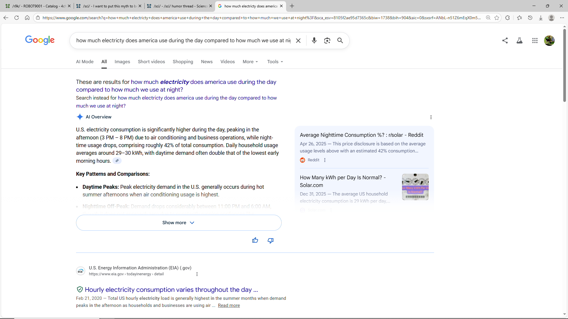 We use more power during the day than we do at night.
