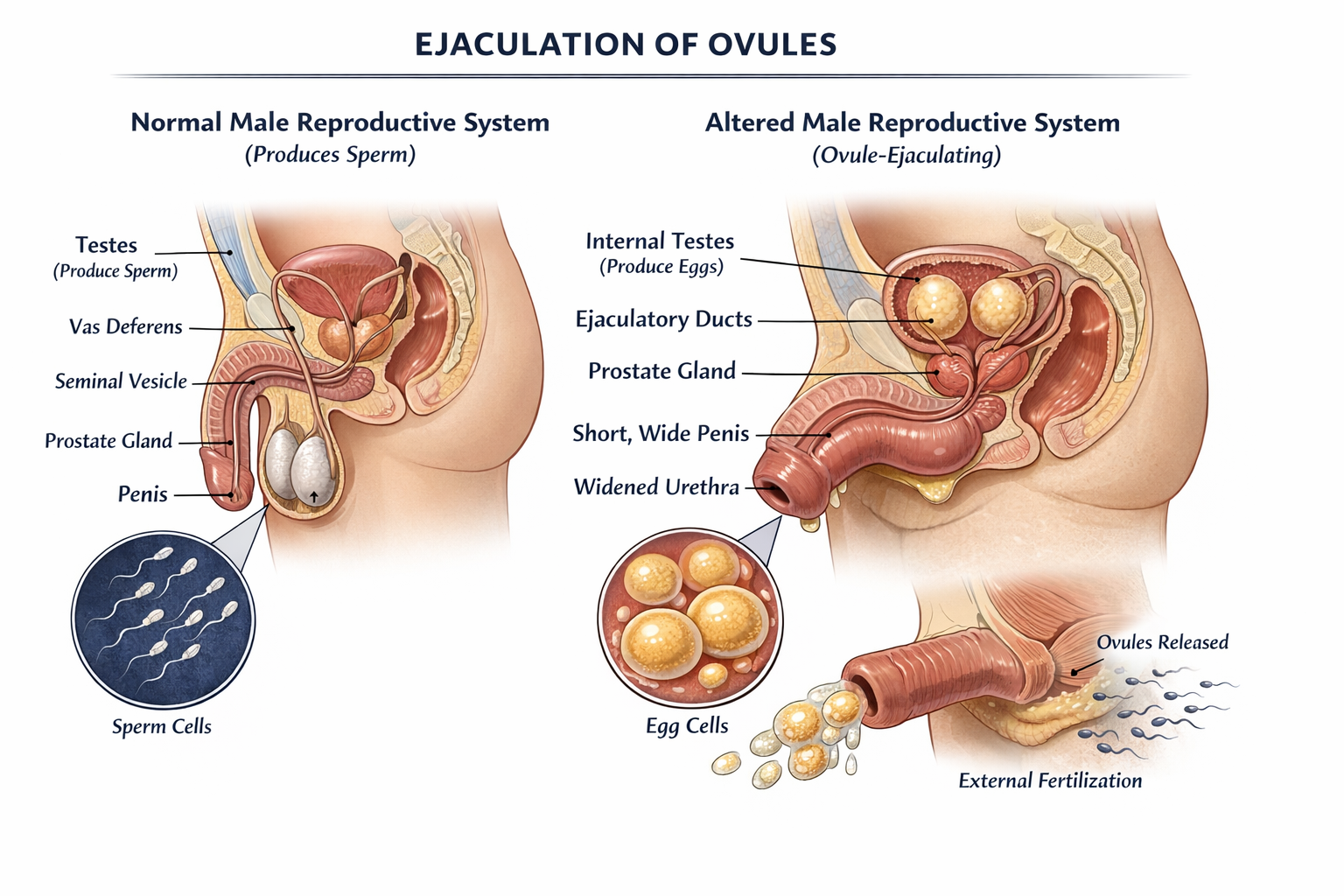 This is a world where the female kind has the phallus. They ejaculate the ovules inside the male uterus and the testicles inside fertilices them. Males bare children, they develop mammary glands, but their bodies are muscular like the ones of our world because they evolved to protect the product.How does the world has changed with this differences, from the first homos to the present days?