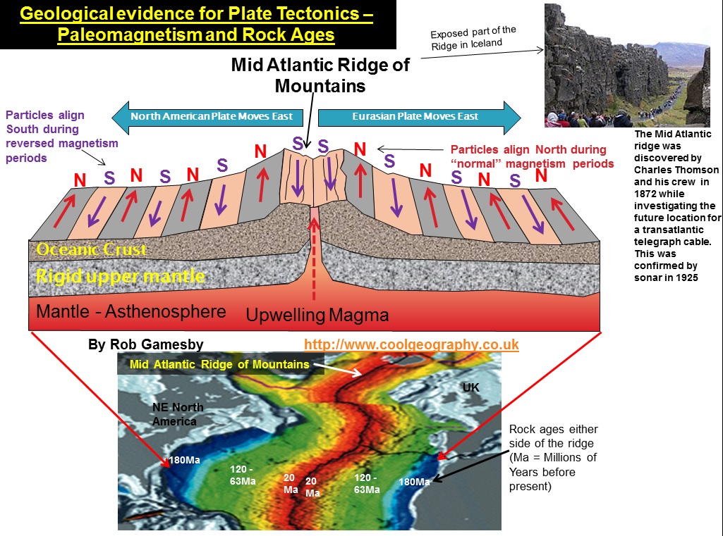 >>16931794we know that the earth's magnetic field periodically changes because in the middle of the ocean at mid ocean ridges (where the continents are pulling away from and new material upwells) the molten rock that contains iron upon freezing leaves a record of the direction of the magnetic field at that time