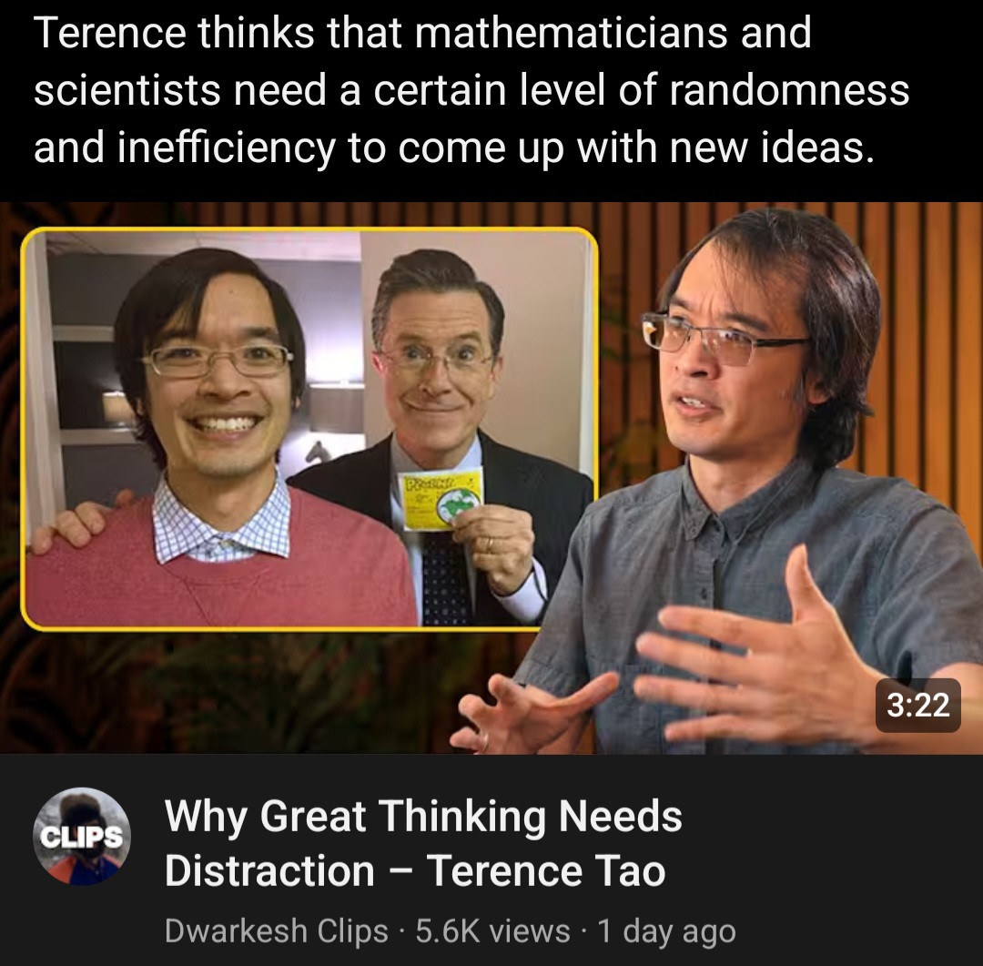 >>16935035If you’re listening to his AI talks and shilling, this is his approach to AI. Basically a magic 8 ball. Then the human should act on AI’s random idea, and then credit AI for solving the open problem. Disgusting AI shill. Tao is probably bribed or blackmailed.