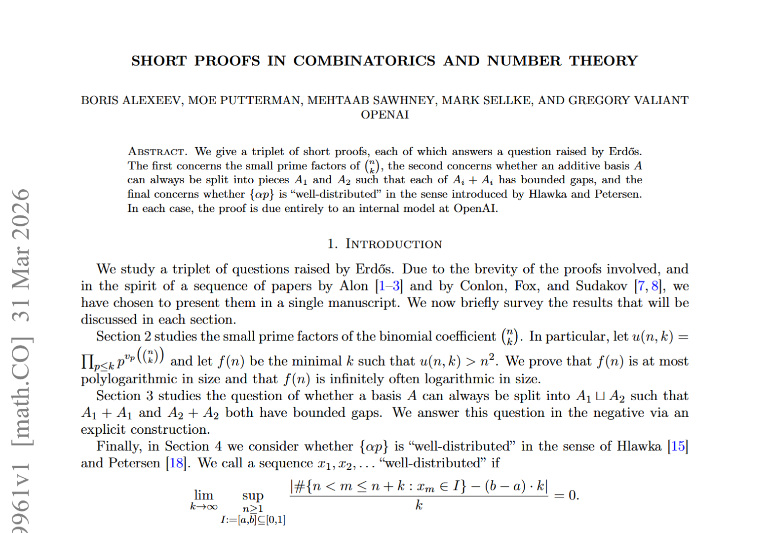another day another 3 erdos problems solved:https://arxiv.org/pdf/2603.29961why aren't you solving these problems and making a name for yourself, anon? a machine that can't think, be creative, or reason is able to do it, so it should be very easy for you.
